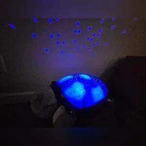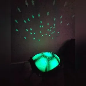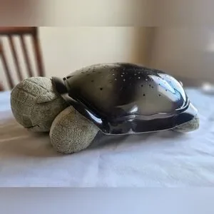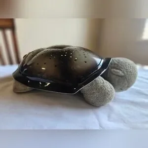 Adorable turtle night light with starry shell. Great for calming bedtimes, runs on 3 AAA batteries (not included). Overall good condition, shines bright, smoke/pet free home. Minor scuffs on shell, stitching to hold down outter edge of velcro torn from opening flap that covers the batteries. Majority of stitching still intact and doesn't affect the use.