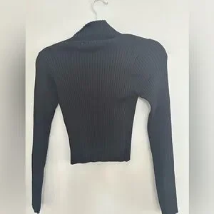 Trendy and chic ASTR the Label Elia Sweater in black, size small. Features a mock neck with bold front cutout, ribbed knit texture, and a slim flattering fit. Long sleeves and cropped silhouette make it perfect for pairing with high-waisted jeans, skirts, or leather pants. A statement piece for date nights, girls’ night out, or streetwear chic looks.
