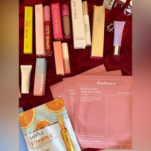 Diverse collection of skincare and makeup products. Includes creams, serums, and masks. Perfect for beauty enthusiasts.
