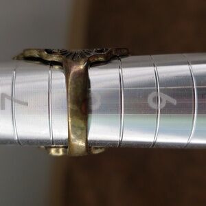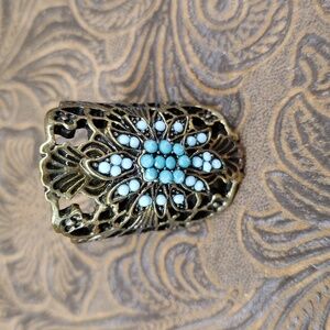 Vintage Western Sunburst Turquoise Color Stones Brass Filigree Ring