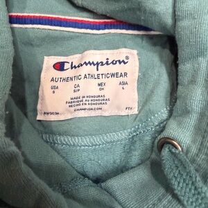 Teal hoodie with drawstring. Champion logo on label. Soft and stylish. Excellent Condition and closet kept in a smoke free home.
