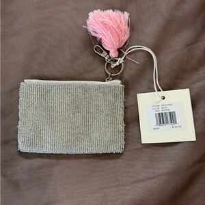 Chic beaded coin purse with ice cream design. Features a pink tassel and secure clasp.