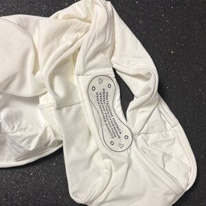 Stylish one-shoulder swimsuit in white. Perfect for beach days.