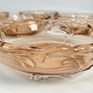 A delicate and charming set of authentic Depression-era glassware, perfect for serving treats or adding to a pink glass collection!