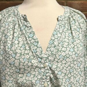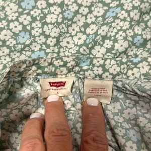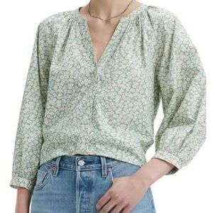 Levi’s WOMEN'S LAINEY Green Floral PRINTED COTTON BUTTON-FRONT TOP Sz Large