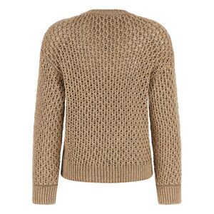 Mouliné yarn sweater worked in bark stitch mixed with cotton tape, V-neck, long sleeves with cuffs and dropped shoulder, band on the hem. true to size fit