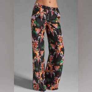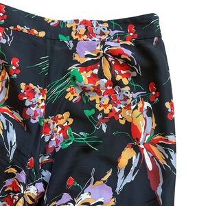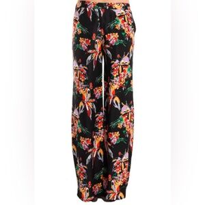 Derek Lam 10 CROSBY Floral Pants Womens Size 4 Black Wide-Leg High Rise Satin