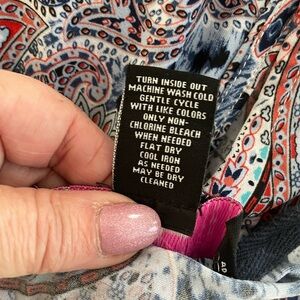Elegant paisley design with a mix of colors. Features a stylish neckline and sleeveless cut. Ideal for versatile wear.