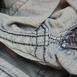 No rips, tears, or stains. There is some puckering in a couple of areas. One being at the bottom of the zipper, the other is two small single spots on the front of the left leg.