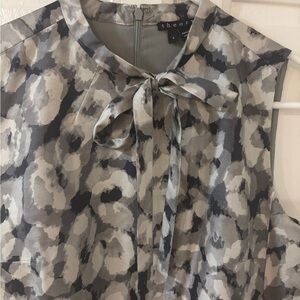 Elegant sleeveless mini dress with a black and white pattern. Perfect for stylish outings. EUC