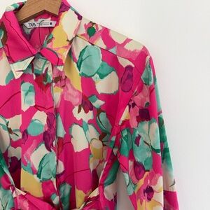 Zara Pink Floral Satin Mini Dress XS