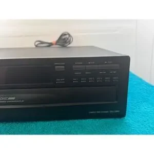 Onkyo DX-C340 6-Disc Carousel CD Changer provides high-quality audio playback with the convenience of a five-disc exchange system, allowing you to swap out discs while one is still playing. This vintage unit from August 1998 features a sleek black finish, a clear digital display, and dedicated buttons for direct disc selection. It includes standard RCA outputs and RI remote control jacks for integration into your existing home audio setup. The robust carousel design and reliable Onkyo engineering make it a great addition for any physical media enthusiast.