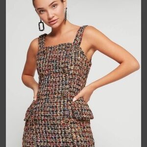 Colorful tweed dress with intricate detailing. Ideal for stylish outings.