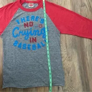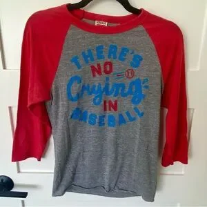 Playful baseball-themed tee with the famous quote “There’s no crying in baseball”.
