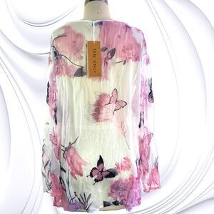 Sheer white pink floral butterfly adjustable sleeves top NWT