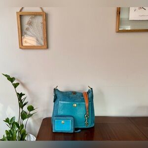 Vintage Coach Nubuc Chelsea Large Hobo in Teal and Compact Wallet