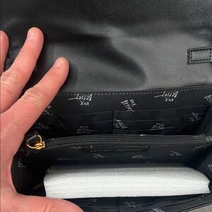 Stylish women's bag featuring unique gold embellishments on a sleek black background. Perfect for adding a touch of elegance to any outfit.