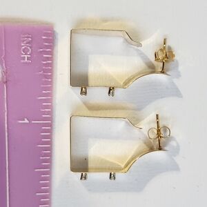 Rare Mid 80s 14K Gold Modernist Geometric Hoop & Diamond Stud Earrings 3.30g