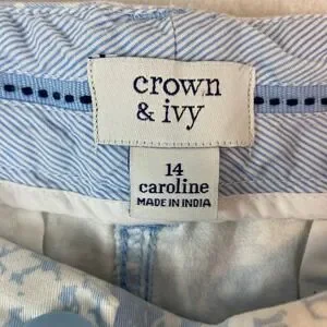 Crown & Ivy Caroline Floral Print Shorts Womens Sz 14 Blue White Casual Preppy