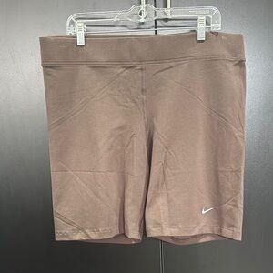 Nike Tight Fit Mid Rise short length stretch shorts, embroidered logo, 8” inseam