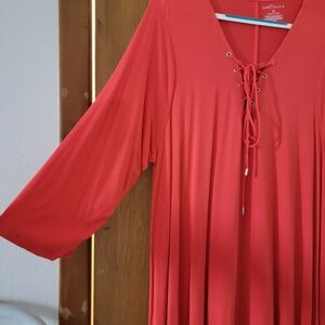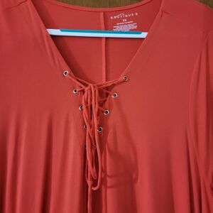 Boutique+ Coral Lace-Up V-Neck Tunic Midi Dress Size 2X