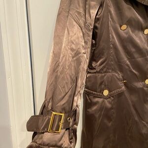 Oltre Brown Satin Shimmer Trench Coat - Size 6