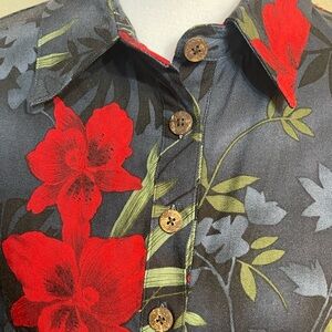Caribbean Joe Women's Dress in size Medium features a short sleeve shift design with a floral pattern, collared neckline, and button closure. Made from rayon material, this knee-length dress is perfect for travel and casual occasions. The multicolor floral theme adds a touch of elegance, making it suitable for all seasons including winter, summer, fall, and spring. Easy to care for as it is machine washable, this regular fit dress from Caribbean Joe is a stylish and comfortable addition to any woman's wardrobe. Like new condition. Smoke free home