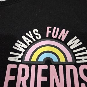 Stylish black sweatshirt with white Sanrio graphics. Comfortable and trendy.