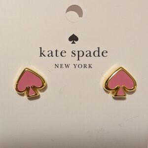 Chic spade-shaped earrings. Gold finish with pink accents. Ideal for stylish flair.