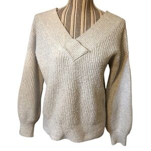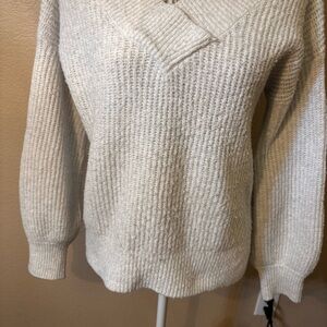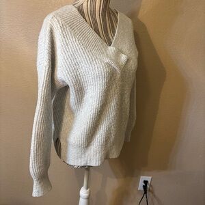 Pink Rose Sweater Large Cream Grey V-Neck Long Slvs Super Soft Hi-Low Side Slits
