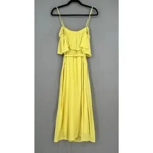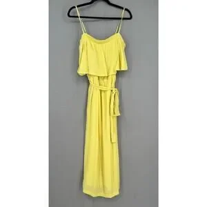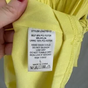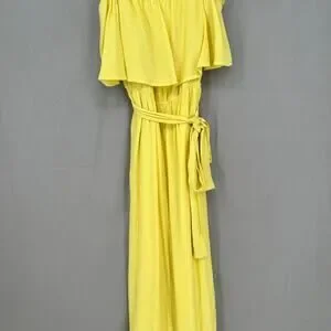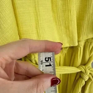 Victoria Sophia Dress Large Yellow Midi Pockets Belted Ruffle Cottage Boho Flowy