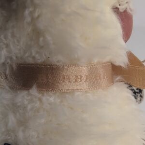 Charming plush sheep with a soft cream body. Features iconic Burberry patterned accents. Adds a touch of elegance to any decor.