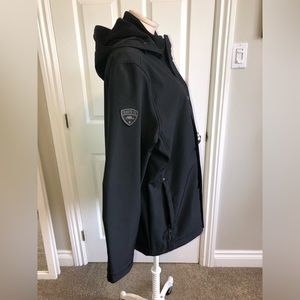 Roots73 19406 Elkpoint SoftShell Jacket Detachable zip off hood Mars food on side Fleece interior