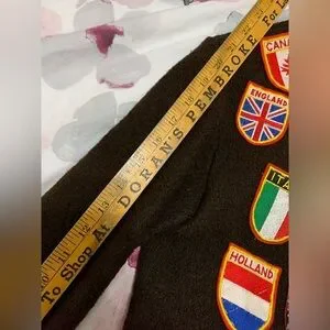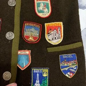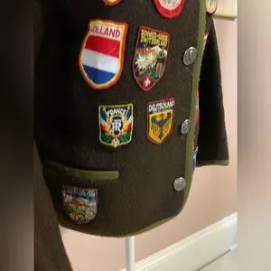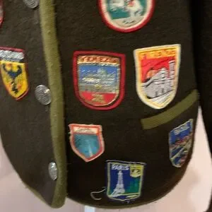 This vintage peice is so cool! I’ve never found anything like it. It’s pure wool and in amazing condition with vintage patches sewn on from different European countries. It says medium but check my pics for measurements to make sure it fits.