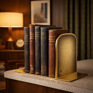 Vintage Brass Metal Bookends Mid Century Modern Gold and Black tones MCM
