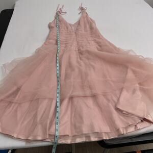 Lazaro Dress Womens Small Pink Tulle V Neck Fit Flare Tiered Midi Formal Party.