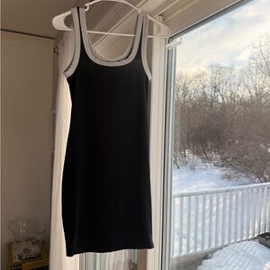 Stylish black tank dress with white trim. Perfect for casual outings.