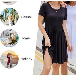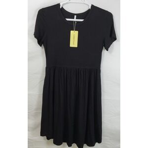 NWT Women's Longyuan Short Sleeve Casual Fit & Flare Dress - Black - Large