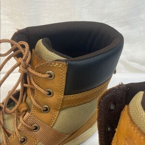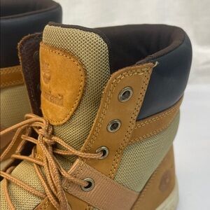 Stylish Timberland boots in tan and olive. Durable and comfortable for everyday wear.