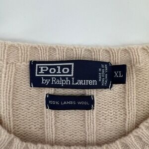 Polo Ralph Lauren Sweater Mens XL Beige 100% Lambswool Ribbed Crewneck Pony Logo