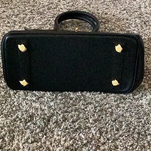 This elegant black handbag is perfect for any occasion. Its sleek design and classic color make it a versatile addition to your wardrobe. 1 large zippered pocket and one slip pocket on interior. NWOT never used. 7.5” tall, 9.5” across, 5” bottom.