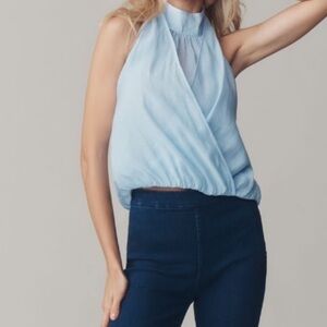 🟤NWT ANTHROPOLOGIE Layered Halter Sleeveless Blouse in Sky Blue XL