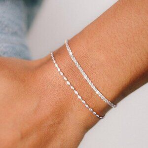 Product details Item width 0.3 centimeters Material Sterling Silver Metal type Sterling Silver Clasp type Lobster Claw Gem type No Gemstone Country of Origin China About this item ELEGANT SILVER BRACELETS SET: These bracelets are made up of Sparkle Glitter chains paired with paper clips and bead chains. These bracelets will shi