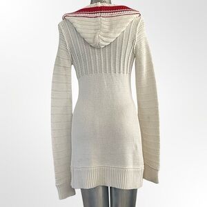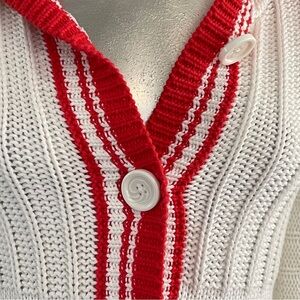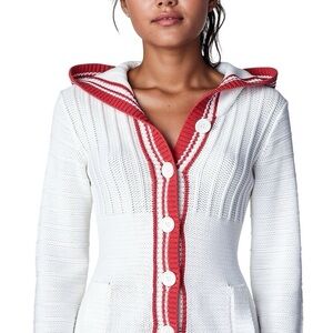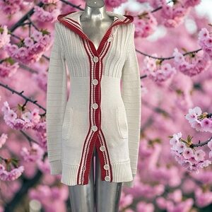 Moda International White and Red Hooded Cardigan in Small
