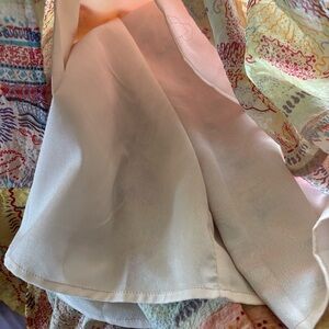 THML Dress in size small with Orange Yellow Pink and Green Floral Patchwork Colorblock is in a Babydoll Midi style with adjustable straps and a tie back to adjust top. This is a flowy dress with liner. Perfect bohemian chic style for a spring or summer day or festival.