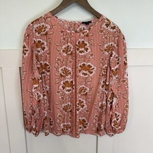 J Crew Ruffle Sleeve Top Climbing Floral Blouse Women's MED Pink Boho Preppy southwestern business casual feminine