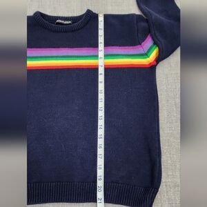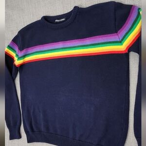 Great condition. No major flaws. Brandy Melville Navy /Rainbow Striped 100% Cotton Crewneck Knit Sweater. Medium