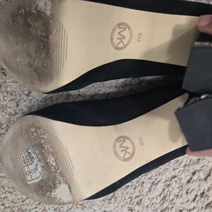 Chic black suede heels by Michael Kors. Features a sturdy platform and block heel. Perfect for any occasion. in great condition