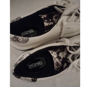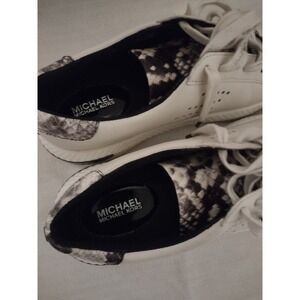 Michael Kors Codie Lace Up Sneakers Cream Snake Print Leather Women's 8.5