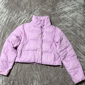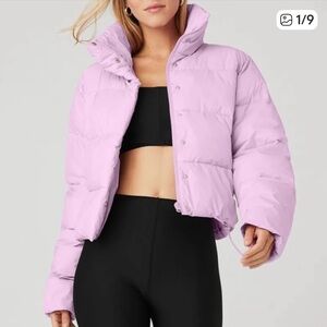 Alo Yoga cropped puffer jacket in a beautiful pastel pink/lavender tone.